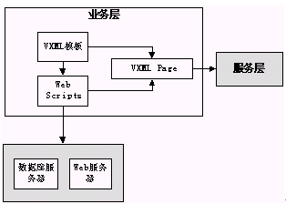 Scripts(ASP,JSP等)語(yǔ)言訪問(wèn)外部系統(tǒng)以獲取數(shù)據(jù),把這些數(shù)據(jù)合并到VXML的模板中,形成完整的業(yè)務(wù)流程。服務(wù)層獲得該業(yè)務(wù)流程后,就可以按照該流程和用戶進(jìn)行交互。