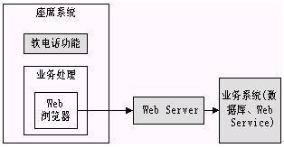 從上圖可以看出,座席端所有的業(yè)務(wù)處理都是在Web瀏覽器上進(jìn)行的,所以無(wú)論是利用原有系統(tǒng)還是新開(kāi)發(fā)系統(tǒng),用戶都不必要關(guān)心座席的具體實(shí)現(xiàn)方式,要做的僅僅是編寫新的JSP,ASP等可訪問(wèn)后臺(tái)業(yè)務(wù)的Web頁(yè)面,然后進(jìn)行簡(jiǎn)單的配置就可以完成業(yè)務(wù)的擴(kuò)充功能。